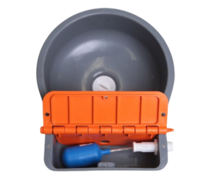 Feita em policarbonato, a tampa do coletor é adaptável e resistente a impactos. Além disso, permite uma ótima visualização e possui um formato compacto e com manuseio confortável.